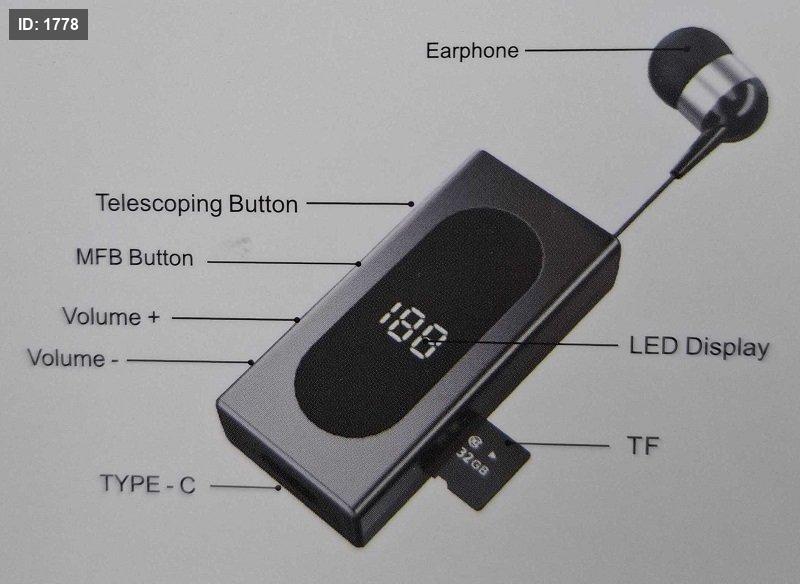 Wireless Bluetooth handsfree headset with a stylish, ergonomic design and clip for comfortable everyday use. It features a built-in microphone and a retract button, allowing easy folding of the earpiece when not in use. Offers freedom of movement during phone calls, ideal for use while driving.