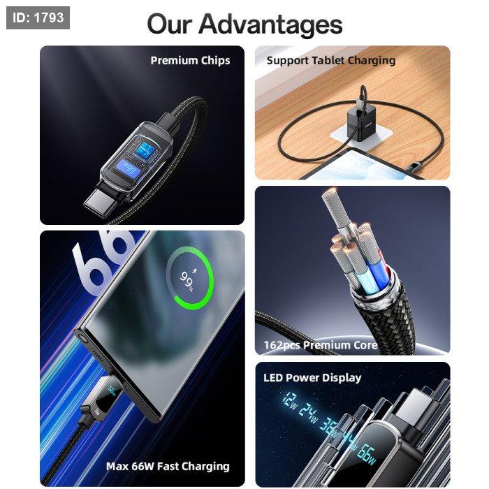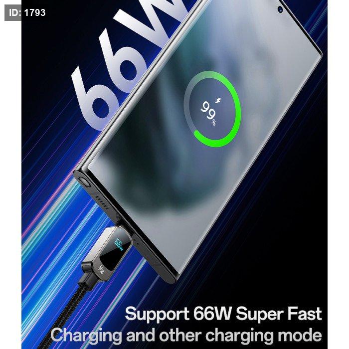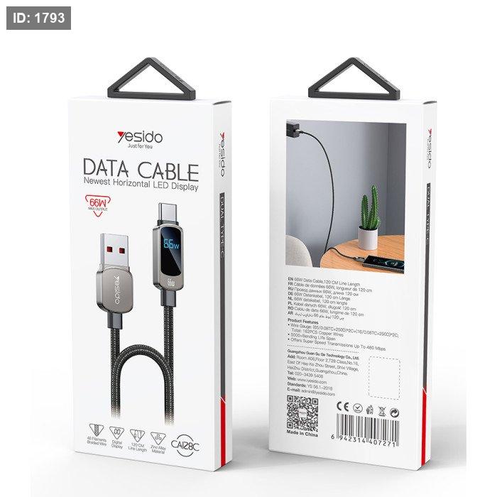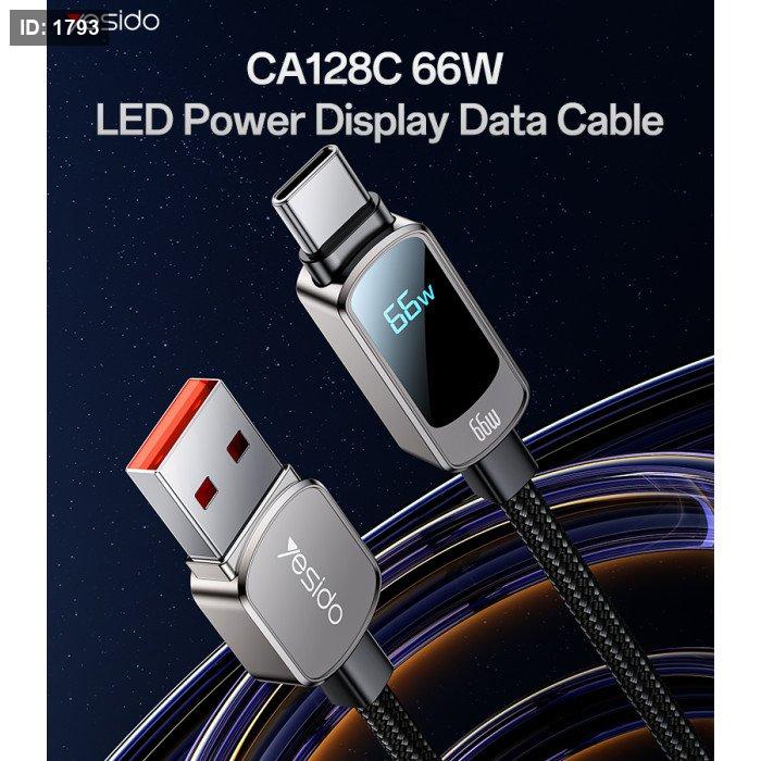 CA128C Yesido 1.2m USB To Type-C 66W Super Fast Charging Zinc Alloy Suppport Tablet Charging LED Power Display Data Cable.