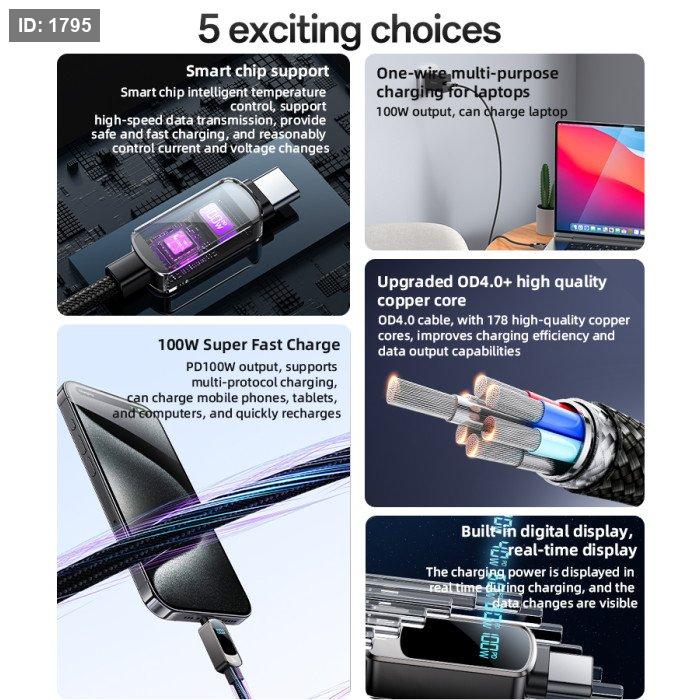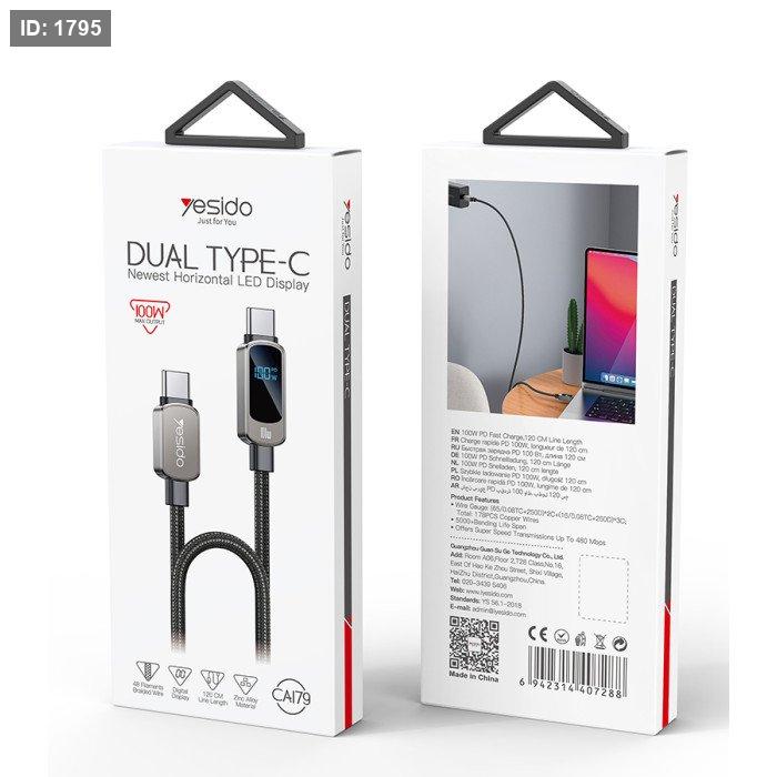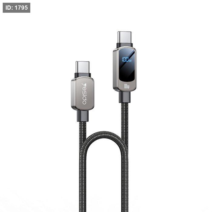 CA179 Yesido 1.2 Meters Type-C To Type-C PD 100W Super Fast Charging Built-in Digital Display Data Cable.