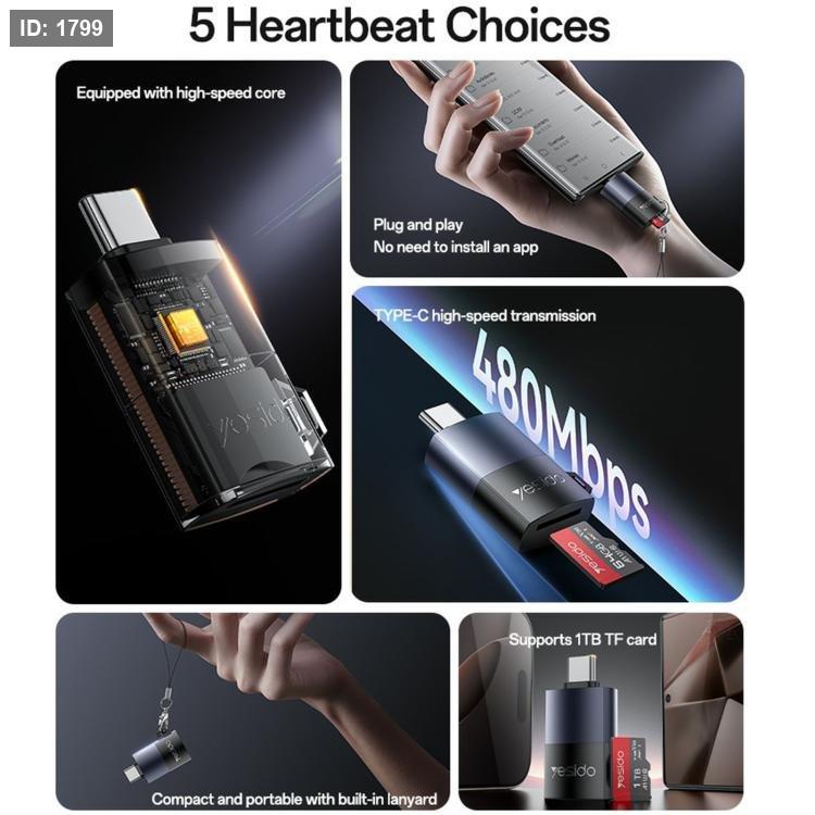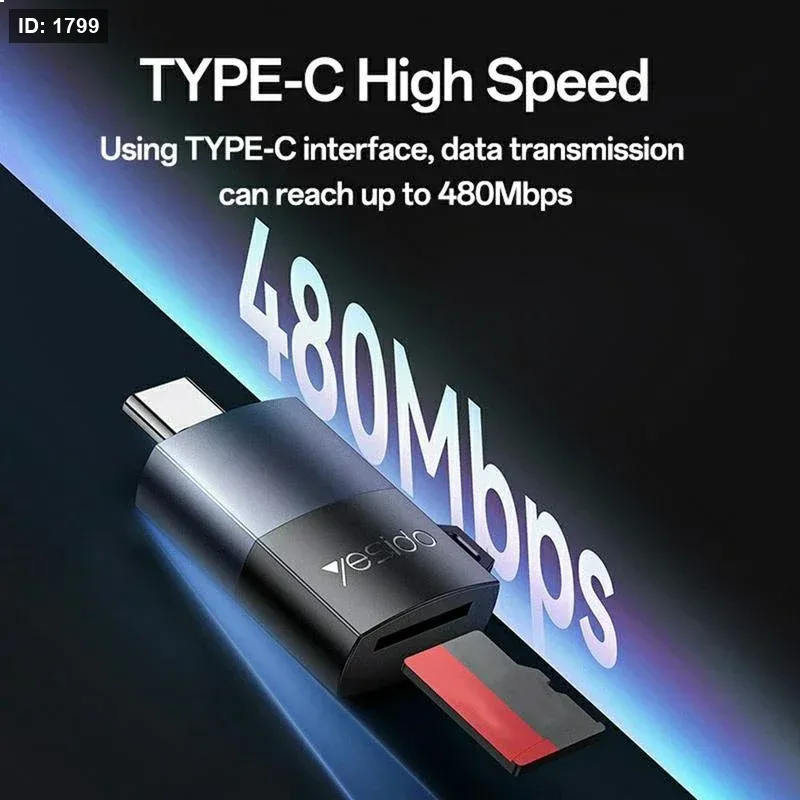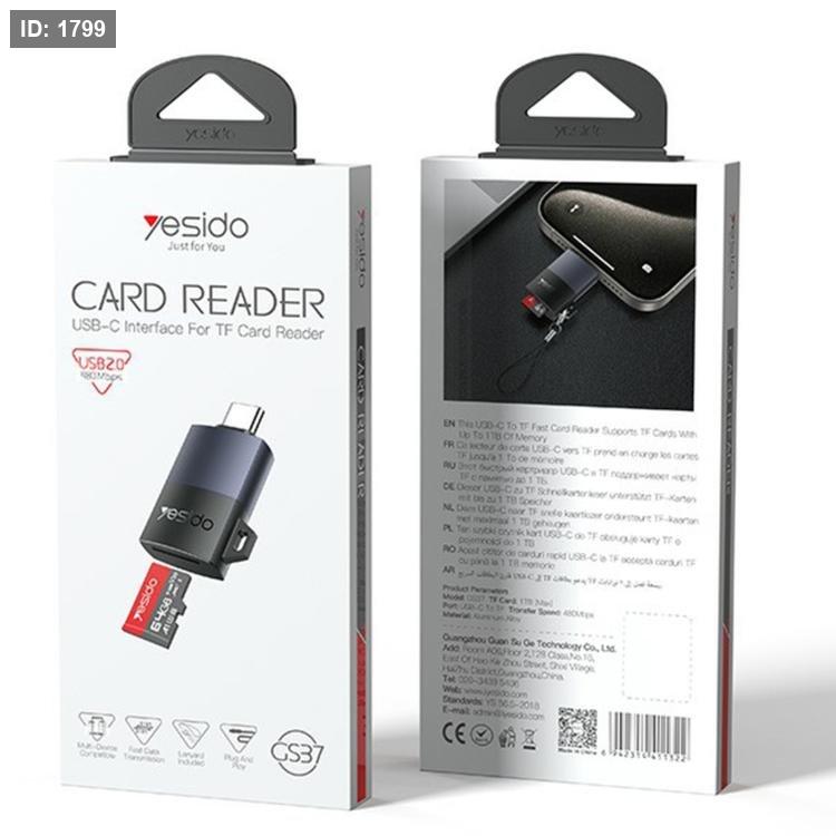 Yesido GS37 USB-C TF Card Reader with Lanyard - 480 Mbps Plug-and-Play OTG Adapter