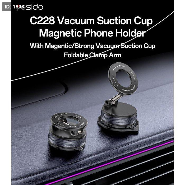 C228 Yesido 360 Rotation Foldable Clamp Arm Magnetic Vacuum Suction Cup Car Phone Holder Innovative Design.