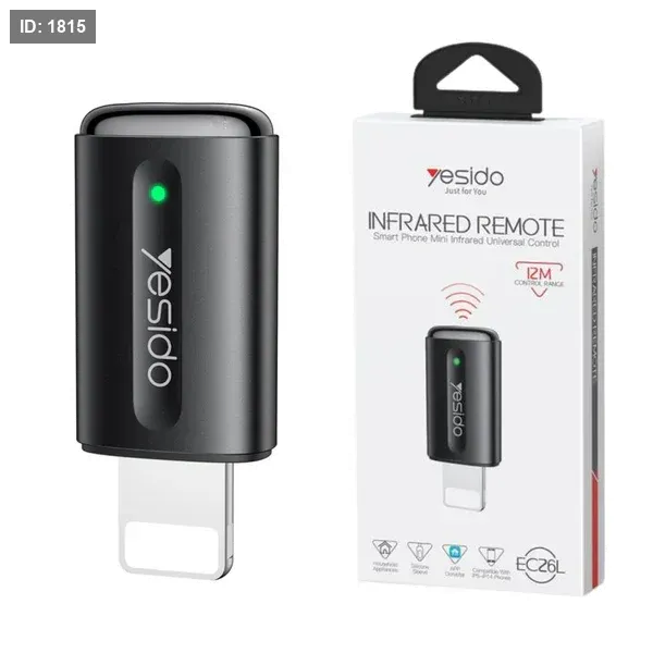 The Yesido EC26L is a compact infrared remote adapter designed for iPhones with Lightning ports, turning your device into a universal remote for TVs, air conditioners, fans, projectors, and more. Just plug it in, download a supported app, and enjoy instant control over your IR-enabled appliances—no batteries, no pairing, no clutter.