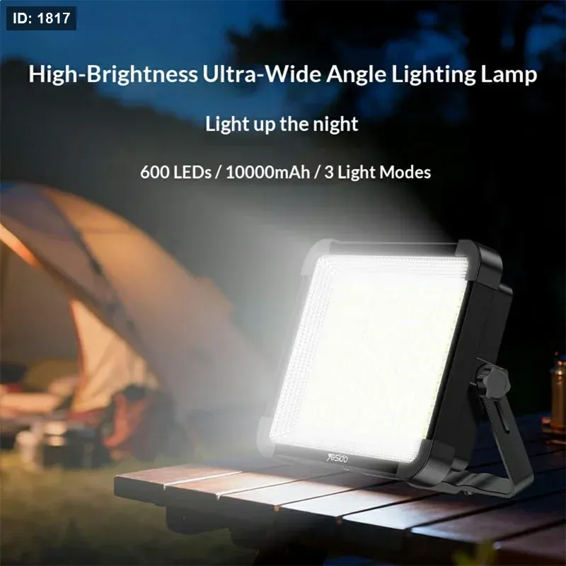 【Versatile Lighting】The YESIDO DH17 is a high-brightness, ultra-wide-angle rechargeable outdoor floodlight. With 600 LED beads and a 10,000mAh high-capacity battery, it offers three lighting modes suitable for camping, night fishing, factory use, and various outdoor and emergency scenarios.