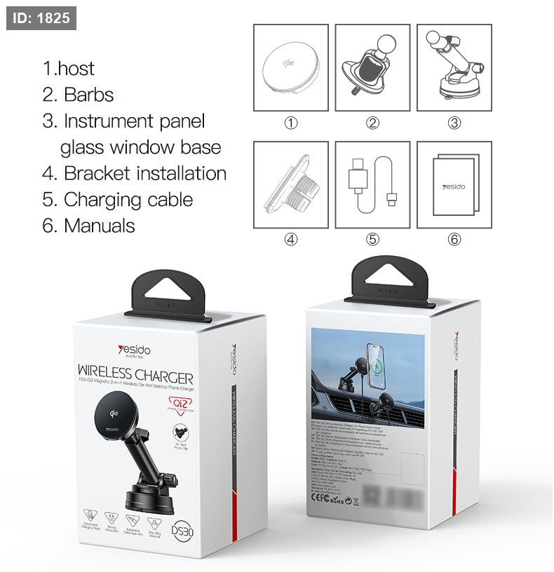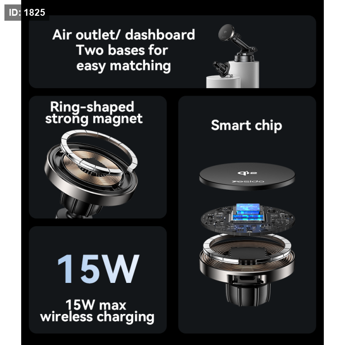 DS30 Yesido 360 Rotating QI2 15W Wireless Fast Charging Phone Holder Air Outlet/Dashboard Car Phone Mount.