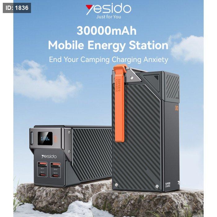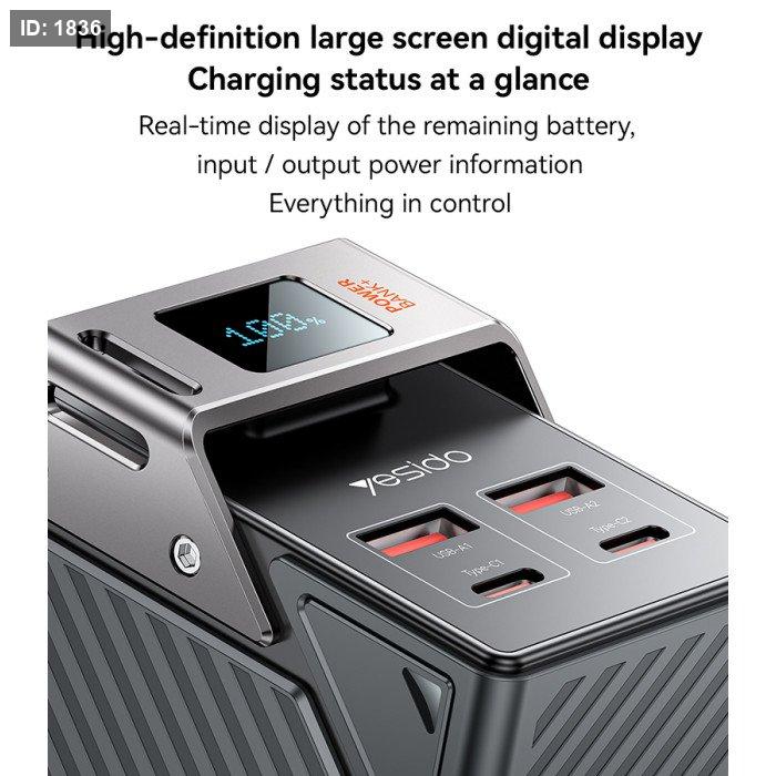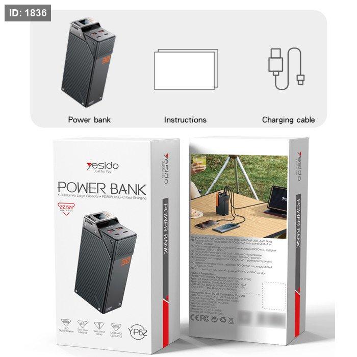 YP62 Yesido 30000mAh PD 20W + SCP 22.5W Fast Charging Multi-port Design High-definition Large Screen Power Bank.
