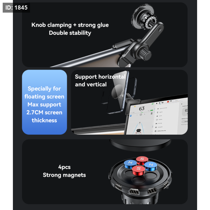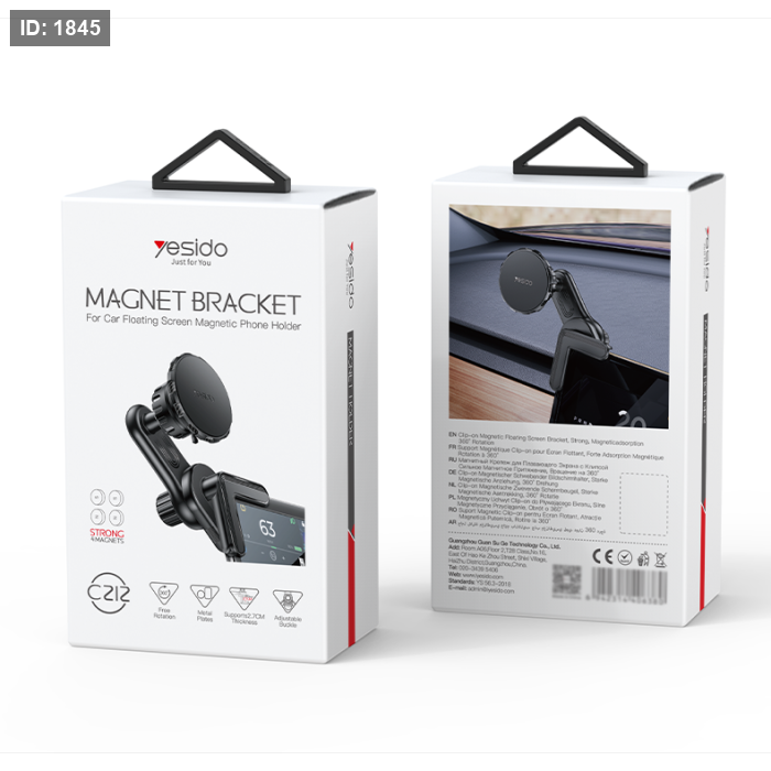 C212 Yesido 360 Adjustable Built-in Base Locking Knob Floating Screen Snap-on Magnet(4 pcs) Car Phone Holder.