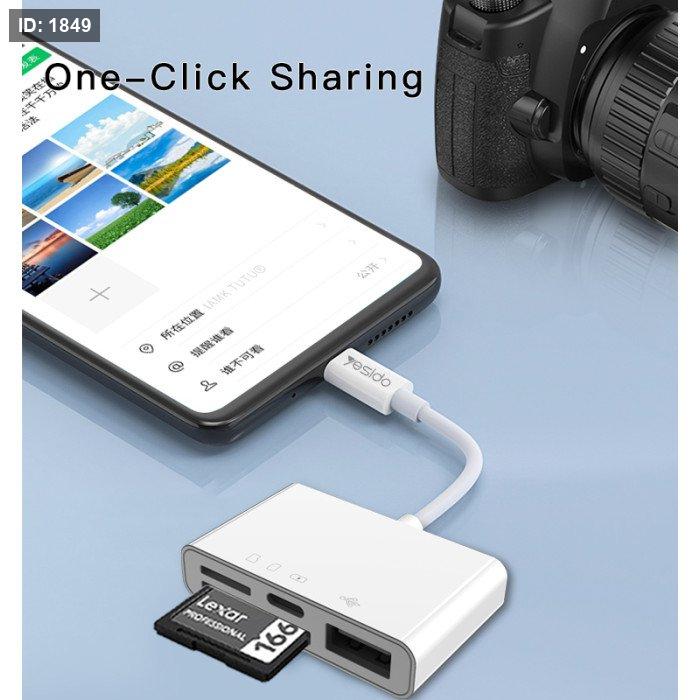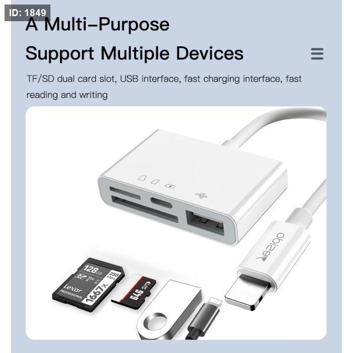 lightning to 1 lightning charge/1 TF card/1 SD card/1 USB.