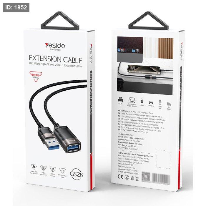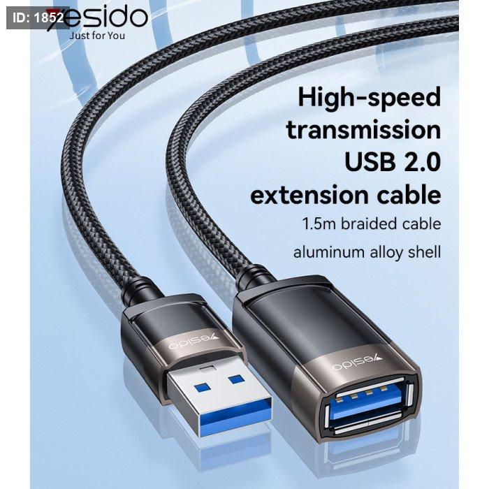 GS26 Yesido 1.5M Braided Cable Aluminum Alloy High-speed Transmission USB 2.0 Extension Cable.
