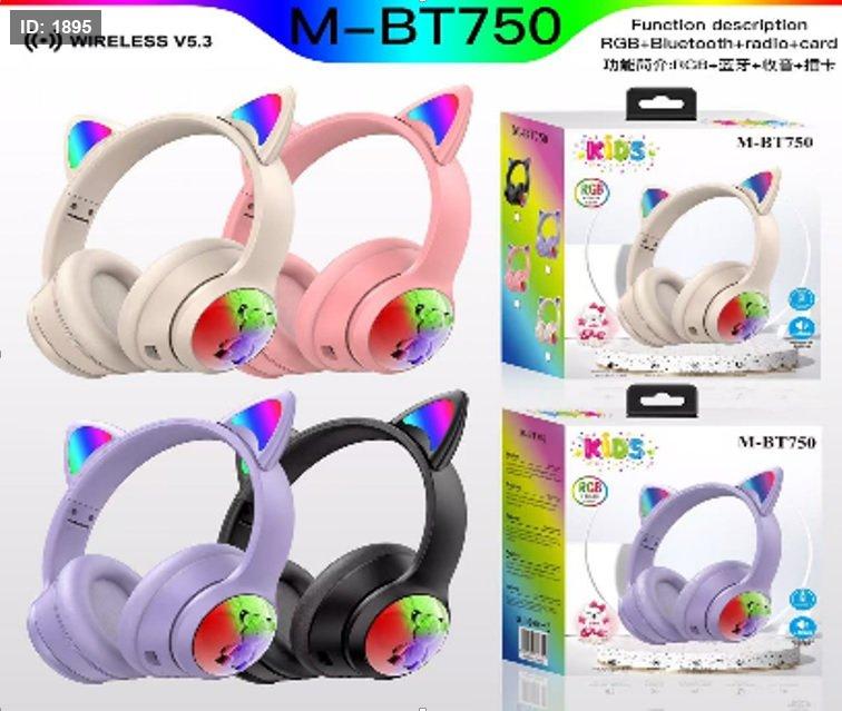 The M-BT750 is a model of wireless, LED-illuminated cat-ear headphones designed primarily for children and teens. These headphones feature Bluetooth 5.3 connectivity, RGB lighting effects, and multi-functional capabilities including an FM radio and a TF/Micro-SD card slot for offline music playback.